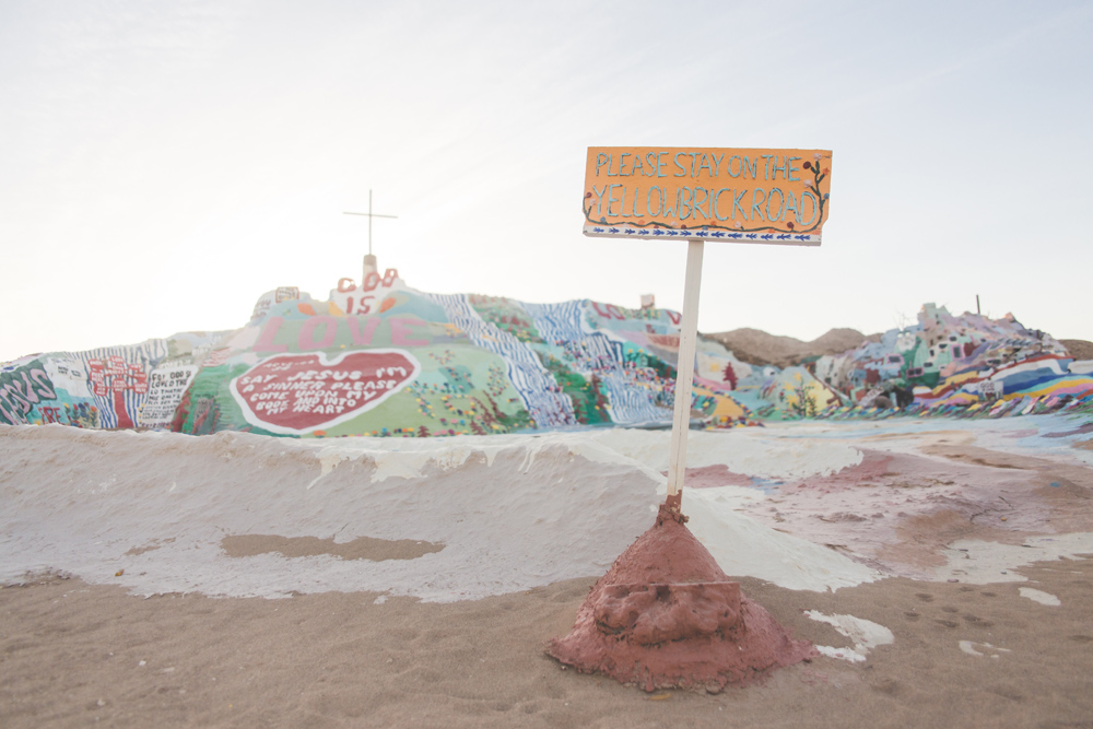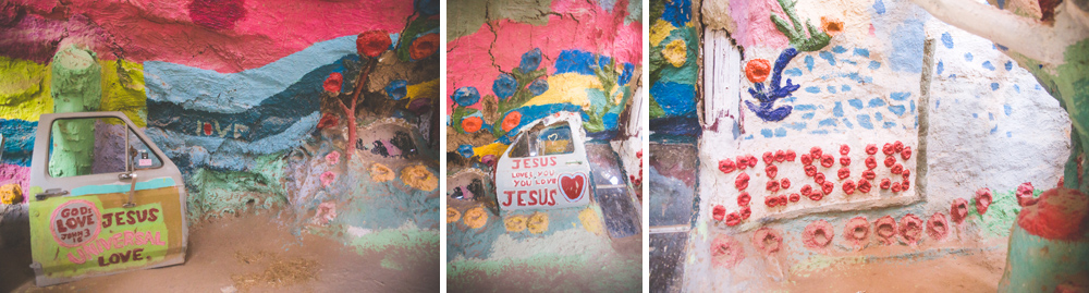 Salvation Mountain is a beautiful piece of art made by Leonard Knight who passed this past February. Before visiting I perceived it as merrily a tourist attraction, but once I was there it was hard not to recognize the love this man felt and wanted everyone to know. Its a persons life work and testament, that has been recognized as a National Folk Art Site. We are so use to seeing Christian signs saying “repent or die” and “sinners go to hell”, but Leonard Knight’s message was purely of love. He built this mountain out of donated paint and filled it with bright colors, flowers and scripture. I felt like I was walking around in a Christian Dr. Seuss book, and I couldn’t help but smile and feel like a child.